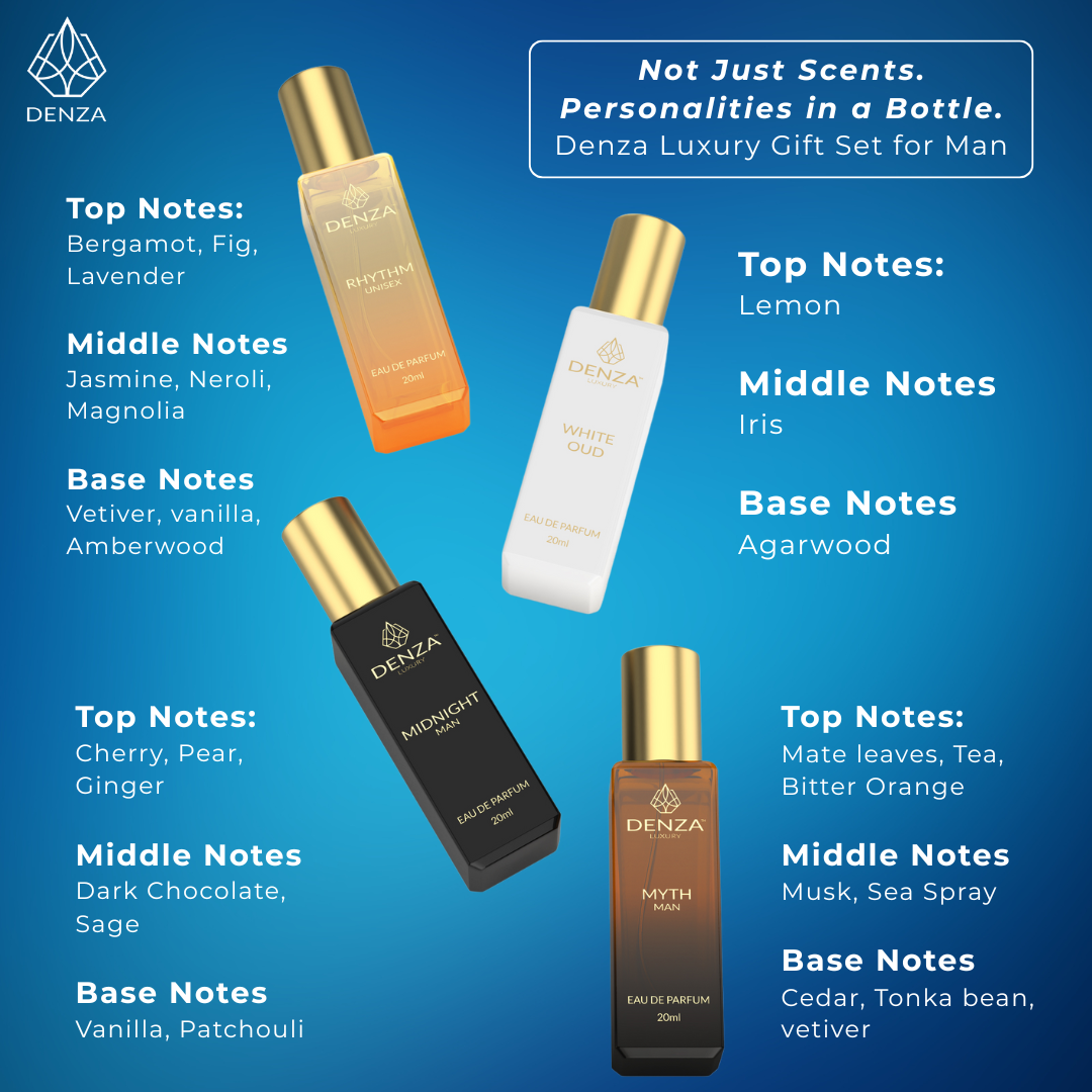 This sophisticated perfume gift set for men features a carefully curated collection of four 20ml fragrances, perfect for any occasion. The set includes two bold, masculine perfumes that exude confidence and charm with their distinct, captivating notes. Additionally, two unisex perfumes are included, with one offering the rich, luxurious scent of white oud and the other providing a versatile fragrance that complements all styles. Whether you’re treating yourself or someone special, this set is ideal for those who appreciate a balance of classic masculinity and the refined allure of unisex scents. Each fragrance is housed in sleek, travel-friendly bottles, making them perfect for on-the-go sophistication.